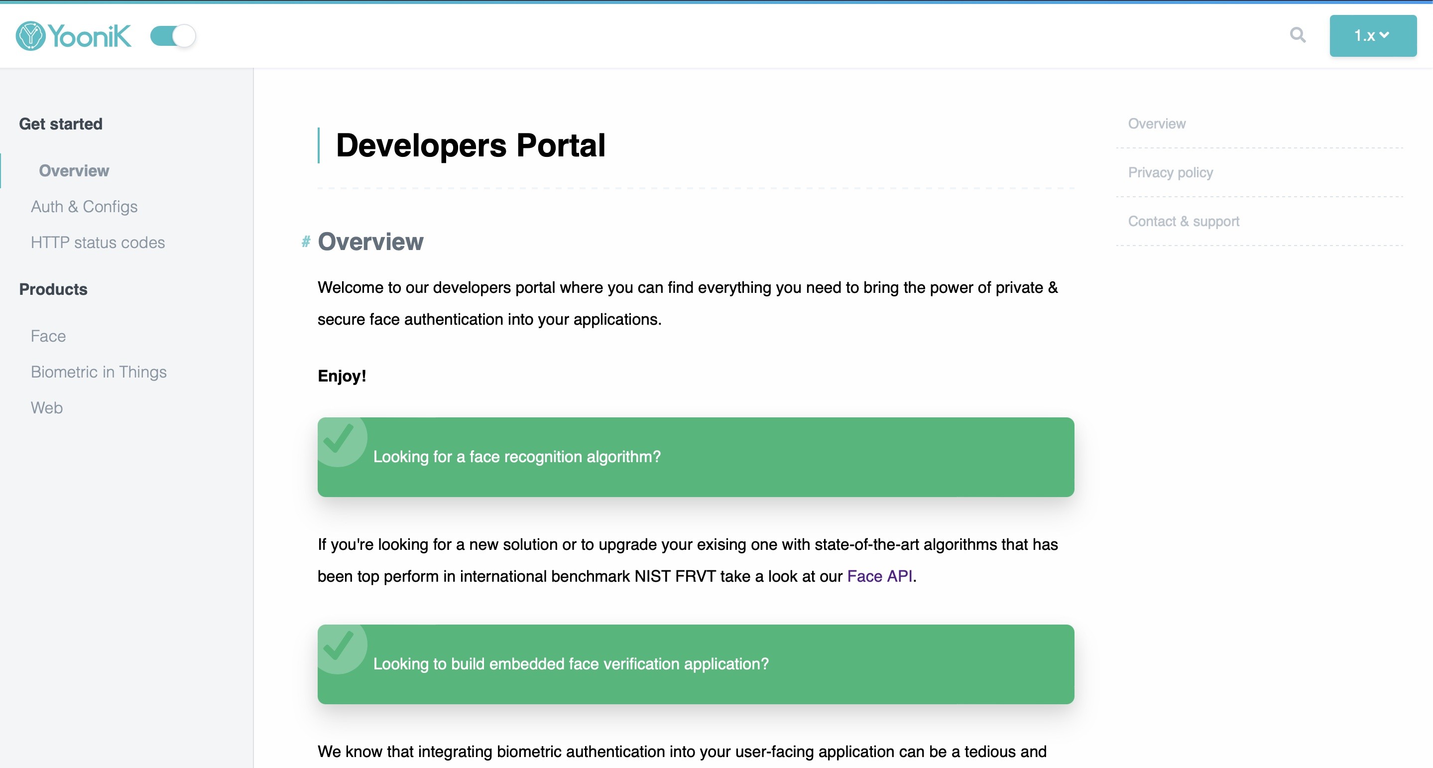 We're excited to announce that we have released the first version of our Developers Portal where you can find everything you need to integrate biometric authentication into your applications, be it web, edge, or docker containers on your infrastructure. Whatever you're looking for, you'll find it here! Stay tuned for upcoming updates.