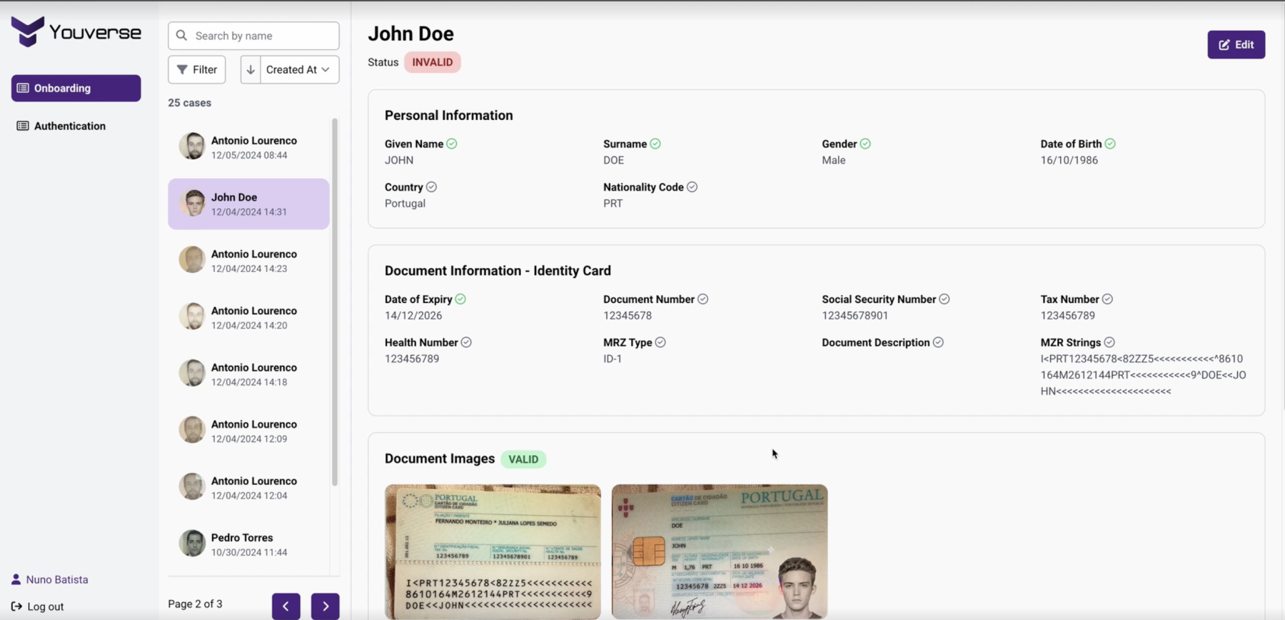 Core functionalities of an identity verification dashboard